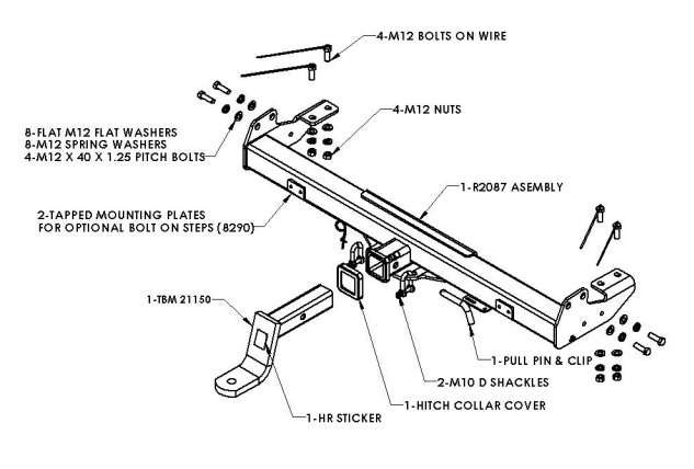 HAYMAN REESE CLASS 4 TOWBAR Vehicle:: TOYOTA HILUX Year: 04/2005-09/2015 Ball Mount: 50x50 REMOVABLE Towbar Rating: 2500KG Ball Weight: 250KG Body: 4D UTE NOTES: ALL 4WD VARIANTS WITH NO FACTORY BUMPER/STEP ***THIS IS THE TOWBAR & PATCH HARNESS ONLY***