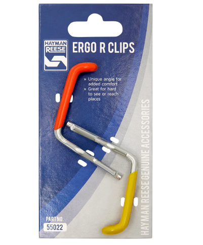 Used to secure the hitch pin of a tow bar. They have a wide handle with an ergonomic angle that allows better clearance and grip, even with gloves. The Hayman Reese Ergo Clips boast an innovative design, engineered with a wide handle & unique angle for better clearance between fingers and hitch pin. Easy to use, even with gloves. Fits most mini and regular hitch pin sizes. Great for hard to see/reach locations plus bright colours make it quick to find when dropped. Product Weight 0.055kg Product Dimensions 7.3 x 3 x 15.5cm Installation Required Yes Finish zinc plated Colour silver Fitting Difficulty DIY Friendly
