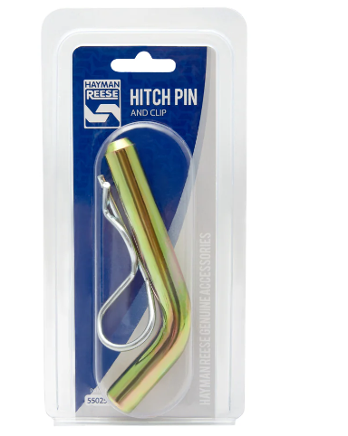 A standard hitch pin with a spring cotter pin that secures your hitch and trailer together. It has a static load capacity of 150 kg and fits a 50 mm x 50 mm hitch receiver. Product Weight 0.25kg Product Dimensions 10 x 2 x 20cm Installation Required Yes Finish zinc plated Colour silver Fitting Difficulty DIY Friendly