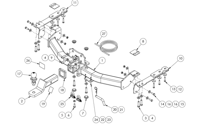TOWBAR & WIRING KIT TOYOTA PRADO FLAT TAILGATE