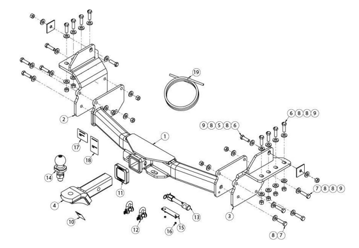 HAYMAN REESE CLASS 4 TOWBAR Vehicle: SSANGYONG MUSSO Q200/Q215 Year: 10/2018-ON Ball Mount: 50X50 REMOVABLE Towbar Rating: 3500KG Ball Weight: 350KG Body: 4D UTE SWB ***THIS IS THE TOWBAR & ECU WIRING KIT. INCLUDING A 7 PIN FLAT TRAILER PLUG***